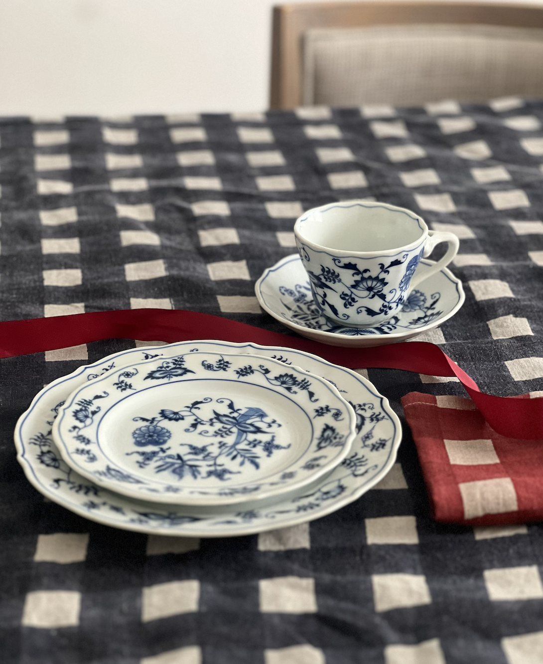 Meadow layers effortlessly with our Indigo Block Print Tablecloth or holds its own as a statement piece.